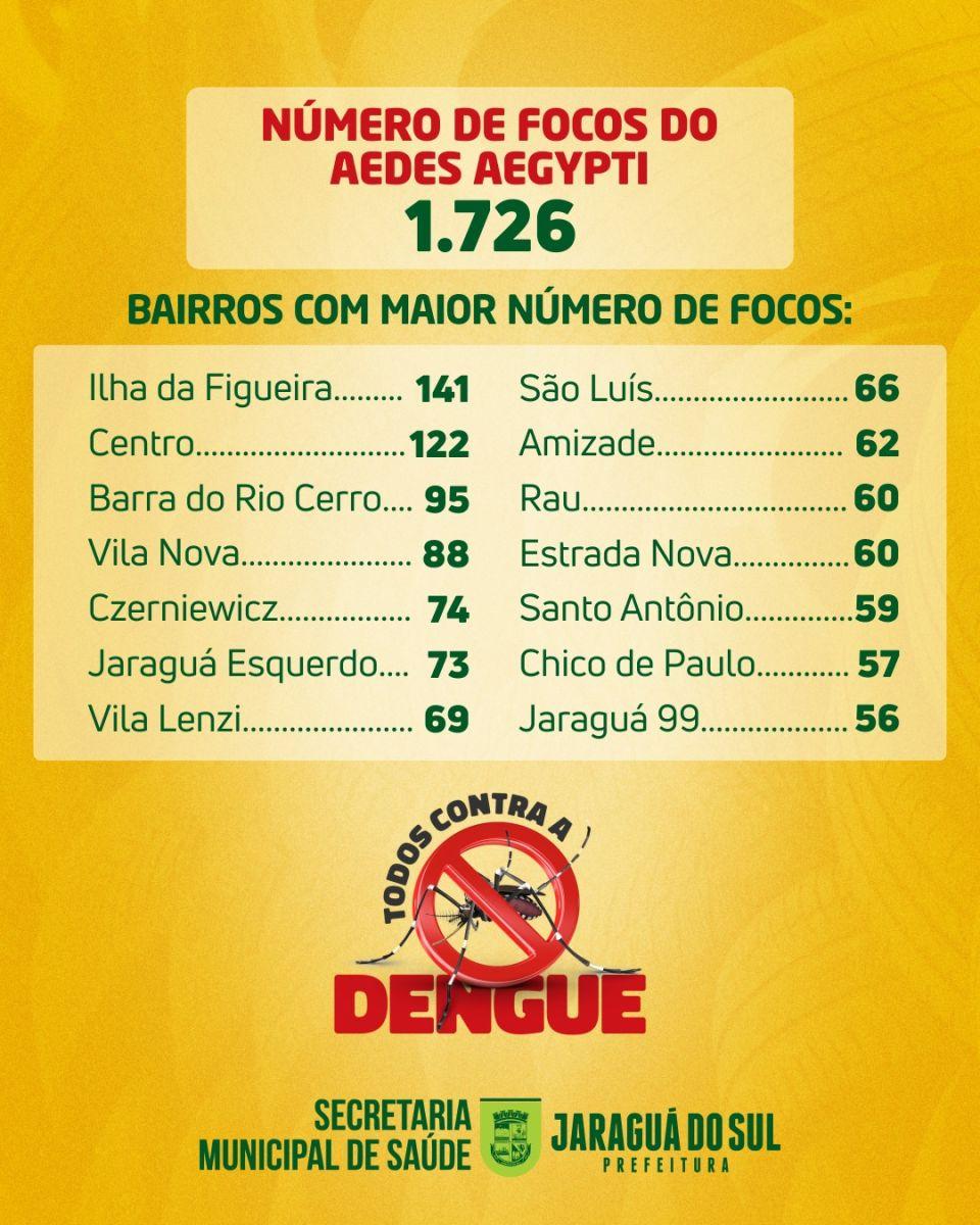 Boletim Epidemiológico da dengue, edição desta segunda-feira (17), com os dados atualizados em relação aos casos notificados, confirmados, descartados e suspeitos de dengue no Município, além do número de focos do Aedes aegypti e bairros que apresentam a maior concentração de focos do mosquito.