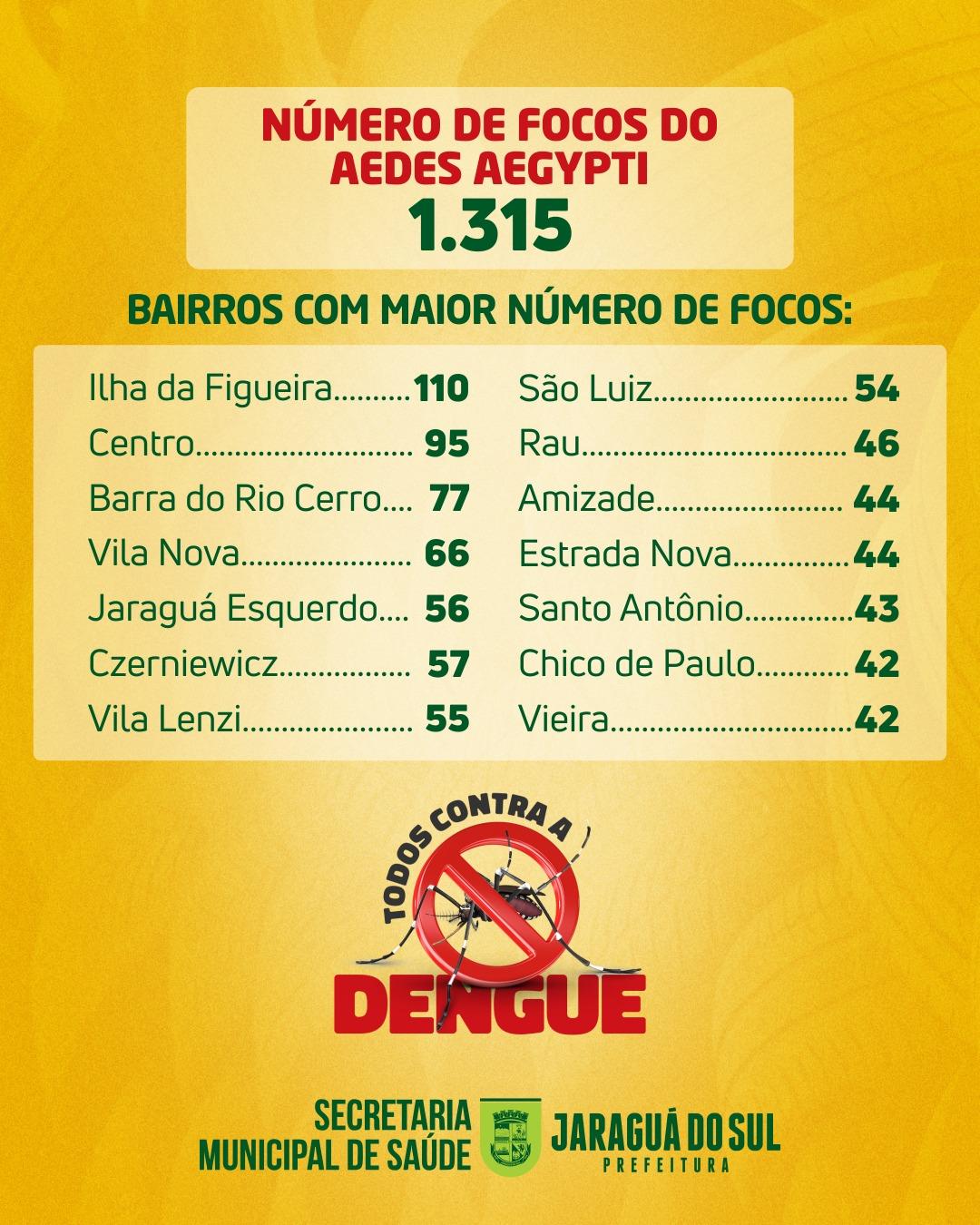 A Prefeitura de Jaraguá do Sul, por meio da Secretaria Municipal de Saúde, passou a divulgar todas as segundas e quintas-feiras o Boletim Epidemiológico da dengue.