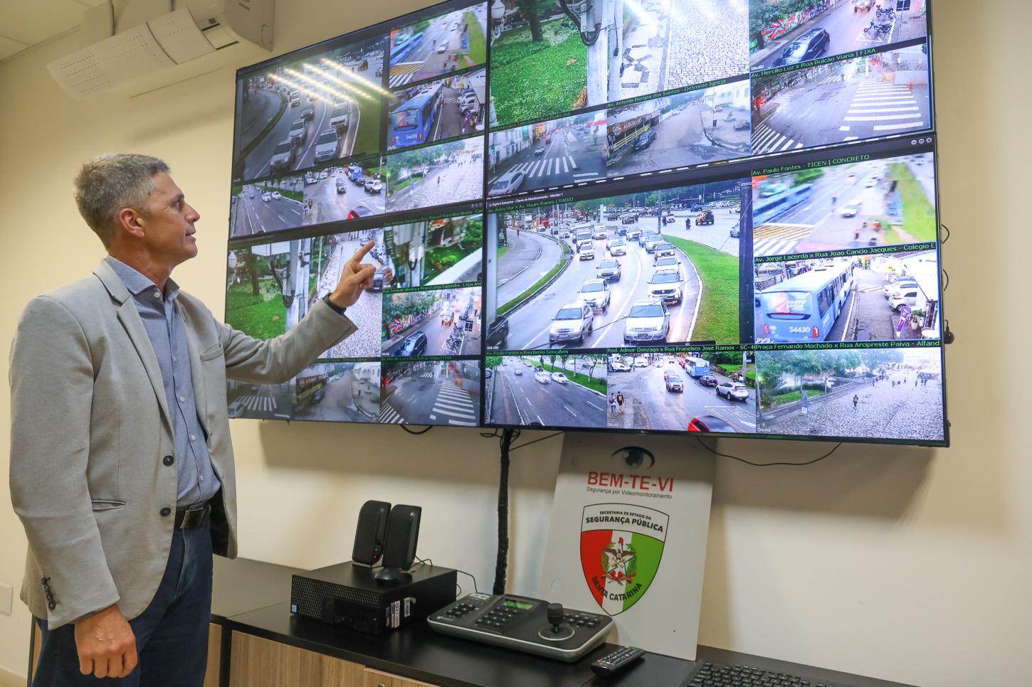 O governador Jorginho Mello autorizou o investimento de R$ 40 milhões para atender, inicialmente, 60 municípios catarinenses com mais de 26,5 mil habitantes, que concentram 76% da população e onde ocorreram 73% dos homicídios registrados em 2024. Com esses recursos, está prevista a instalação de 1.000 câmeras com inteligência artificial para reconhecimento facial nesses municípios.