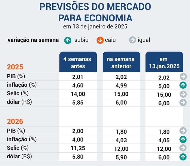 Trata-se da 2ª semana seguida em que os analistas indicam alta do IPCA (Índice Nacional de Preços ao Consumidor Amplo), responsável por medir a inflação oficial do país. As perspectivas foram publicadas no Boletim Focus desta 2ª feira (13.jan.2025)....