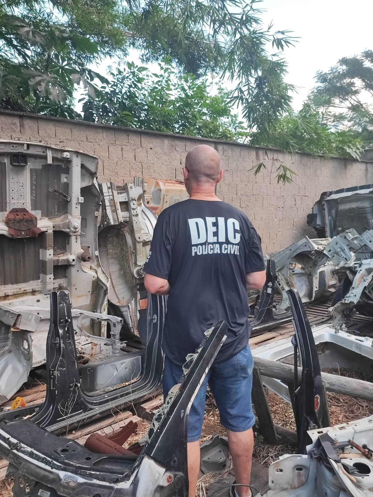 Durante a diligência, foram apreendidos componentes automotivos pertencentes a 19 veículos com procedência ilícita, incluindo veículos com registro de furto/roubo e outros com numeração suprimida, prática utilizada para dificultar a identificação da origem dos bens.